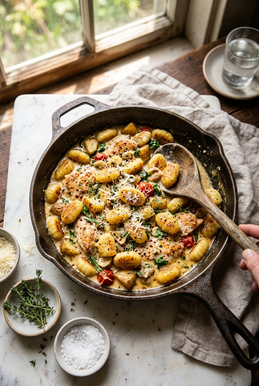 Tender homemade potato gnocchi meets succulent chicken in a creamy sauce. This comforting Italian-inspired dish is perfect for cozy dinners!
