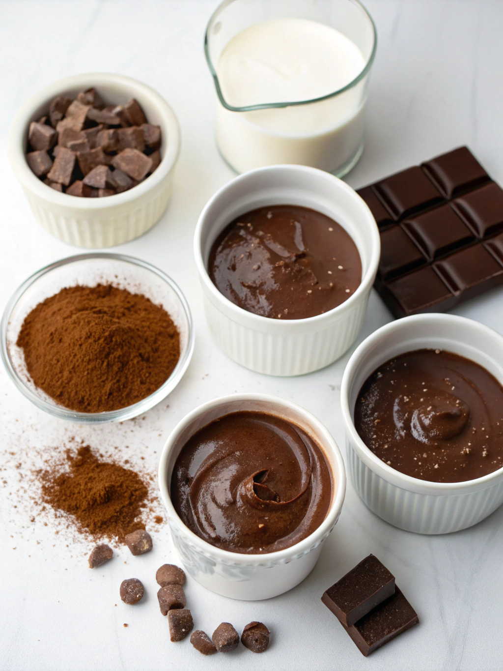 Creating the perfect chocolate pudding pots begins with gathering quality ingredients. Here’s what you’ll need for four generous servings: